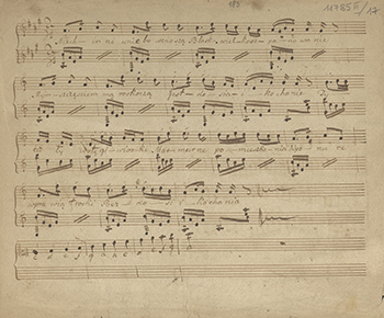 Autor i kopista nieznany. Na karcie 1 recto pieśń, na karcie 1 recto kilkanaście taktów szkicu Walca C-dur na fortepian. Kopista nieznany, ok 1840.