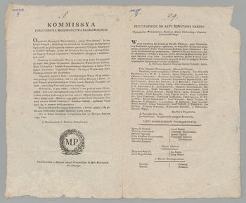 Na końcu: Dan na Sessyi Kommissyi Porządkowey dnia 10. Miesiąca Kwietnia 1794 Roku. [Sygn.:] S. Dembowski K. C. Kommis: prezyduiący.