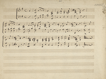 [Utwór na fortepian G-dur]. - [18-19 w.] - 1 karta, (stron zapisanych 1), (paginacja ciągła w klocku strona 201-202). ; 24 x 31 cm.