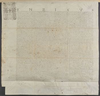 Pieczęci króla Henryka Walezego brak, pozostały dziurki po sznurku.