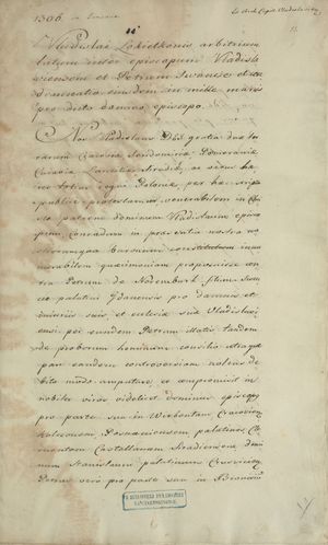 Streszczenie: Na s. 481 "Processus ac sententia pro Eppo. Vladislaviensi contra Commendatorem et fratres de Lubiszow..." 1324.