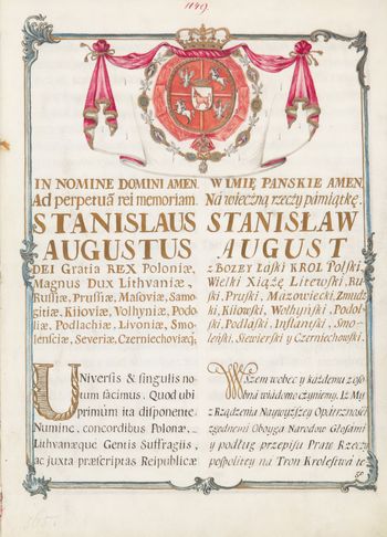 Pod tekstem: "Stanisław August król"; "Klemens Kozłowski Pieczęci Wielkiej Koronnej na ten czas sekretarz m.p.".