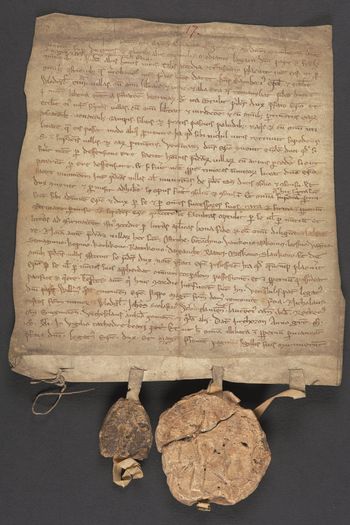 Z czterech pieczęci zawieszonych na paskach pergaminowych lub lnianym sznurku pozostały: biskupa kujawskiego Michała [uszkodzona]; księcia pomorskiego Sambora [uszkodzona]; lniany sznurek po pieczęci legata papieskiego Wilhelma; pasek pergaminowy po pieczęci mistrza krzyżackiego Poppona.