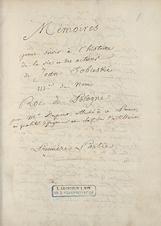 Na s. 2 ręką nieznanej osoby notatka: „wyjęta z dzieła François Coyer, Histoire de Jean Sobieski, roi de Pologne ..., wyd. m.in. w Warszawie w 1761 r., T. 1-3”.