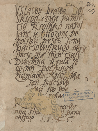 "Ustawy prawa polskiego Palczowskiego 1555". - 1555. - 354 strony : pismo kilku rąk ; 20,5 x 15,5 cm.