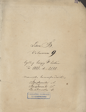 Vol. nr 9. Nr listów: 1805-2188. Listów 384.