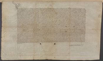 Pieczęci króla Władysława Jagiełły brak, pozostały dziurki po sznurku.