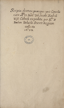 Scripta diversa praeciupe vero Cancellariatu Illmi. et Rmi. Dni. Iacobi Zadzik Eppi. Culmen. Expedita per […] Paulum Kołucki Secret. Regium collecta 1632.