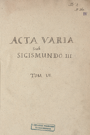 Acta varia sub Sigismundo III. T. VI. Legacje, mowy, listy, pisma publiczne i dokumenty z l. 1571-1632.