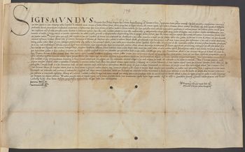 Pieczęci króla Zygmunta Starego brak, pozostały dziurki po sznurku od pieczęci.
