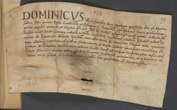 Pieczęci biskupa brak, pozostały nacięcia na pasek do przywieszenia pieczęci.