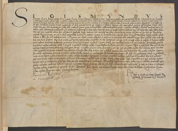 Pieczęci króla Zygmunta Starego brak, pozostały nacięcia na pergaminowy pasek.