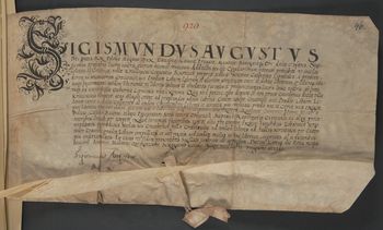 Pieczęci króla Zygmunta Augusta brak, pozostał pergaminowy pasek.