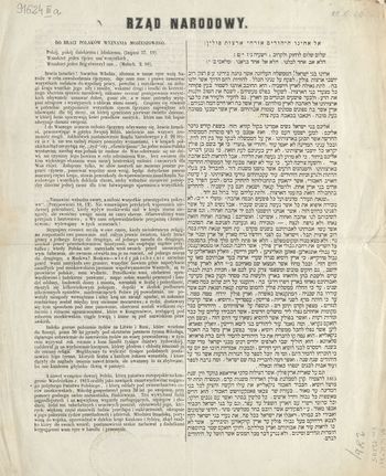 Do Braci Polaków Wyznania Mojżeszowego. - [Warszawa : wydawca nieznany, 22 VI 1863]. - [1] karta (2 strony) ; 36,5x29 cm.