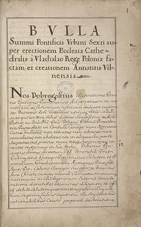 "Privilegia seu fundationes ecclesiarum dioecesis Vilnaensis". - około 1601-1800. - 490 kart ; 31 x 18,5 cm.