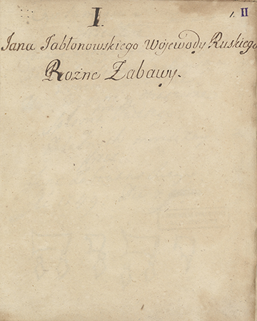 "Jana Jabłonowskiego W. R. różne zabawy". - [około 1701-1731]. - 60 stron : pismo różnych rąk ; 21,5 x 17 cm.