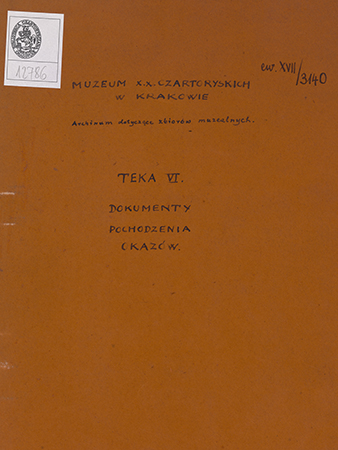 Dokumenty pochodzenia okazów w Muzeum XX. Czartoryskich.