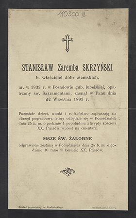 Zawiadomienie o nabożeństwie żałobnym w kościele XX. Pijarów (Kraków).