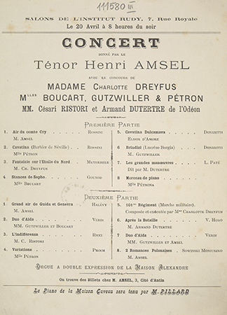 Nad tekstem: Salons de l'Institut Rudy, 7, Rue Royale Le 20 Avril à 8 heures du soir.