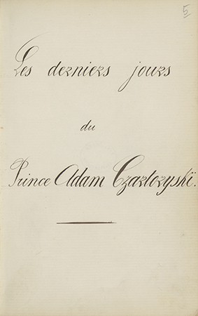 Na s. 4 dedykacja autora dla Marceliny z Radziwiłłów Czartoryskiej. Na s. 7 wklejona fotografia ks. Adama Jerzego Czartoryskiego.