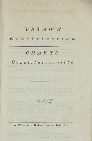 Na stronie 46: "Działo się w Zamku Naszym Królewskim, w Warszawie, dnia 27 Listopada 1815 Roku (podpisano) Alexander".