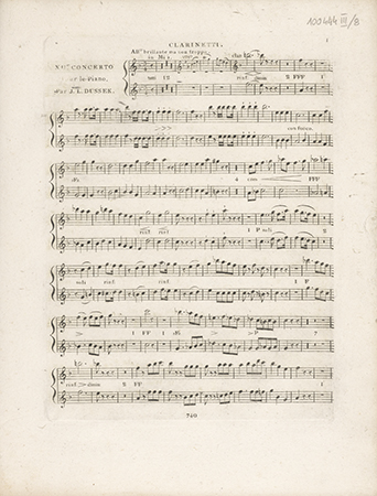 Głosy klarnetów (2) do sygnatury 100444 III/1 - 100444 III/10. Brak głosu fortepianu.