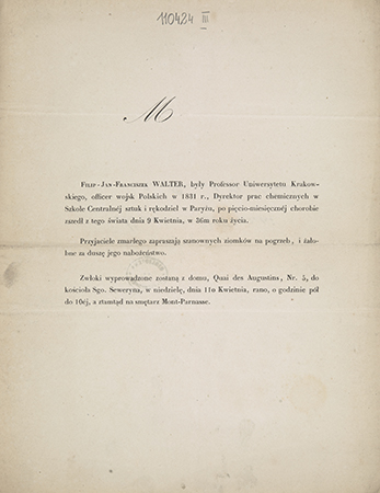 Zawiadomienie o pogrzebie na cmentarzu Montparnasse (Paryż).