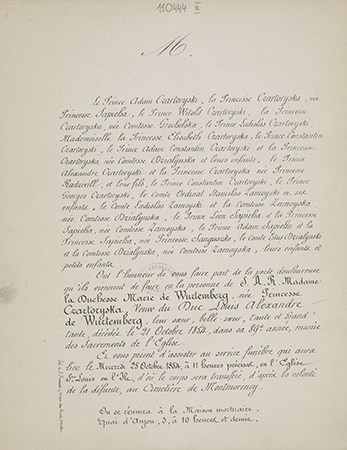 Zawiadomienie o pogrzebie na cmentarzu Montmorency.