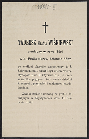 Zawiadomienie o pogrzebie w Krystynpolu (obecnie Czerwonogród - Ukraina).