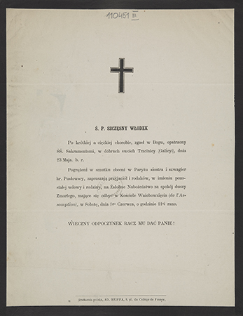 Zawiadomienie o śmierci (Trzcinica, woj. podkarpackie).