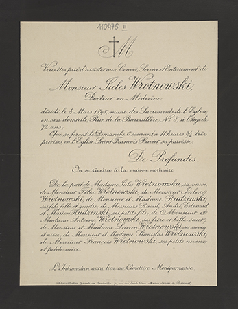 Zawiadomienie o pogrzebie na cmentarzu Montparnasse (Paryż)