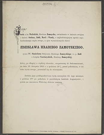 Zawiadomienie o pogrzebie na cmentarzu Währing (Wiedeń).