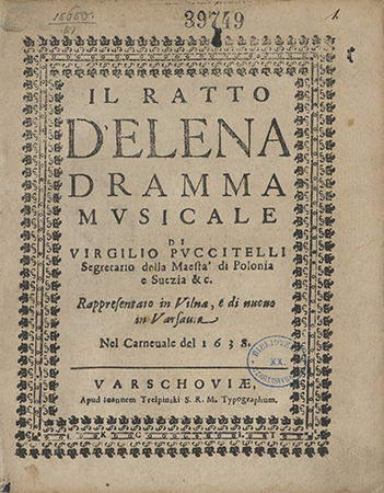 Rappresentato in Vilna e di nvovo in Varsavia Nel Carnevale del 1638.