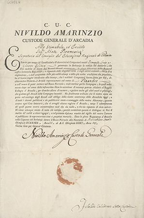 Podpis Nivildo Amarinzio (wł. Giocchino Pizzi) kustosz gen.