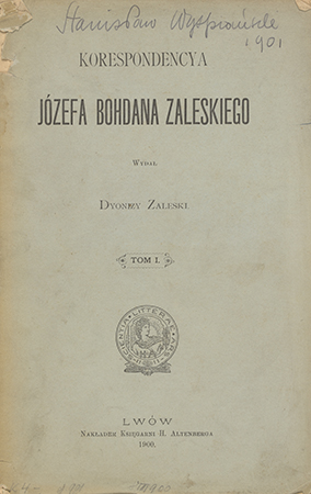 Korespondencya Józefa Bohdana Zaleskiego. T. 1 / wydał Dyonizy Zaleski. - Lwów : nakładem Księgarni H. Altenberga, 1900 ([Lwów] : z Drukarni Władysława Łozińskiego - Zarządca W. J. Weber). - [4], 299, [1], VII, [1] strona ; 24 cm.