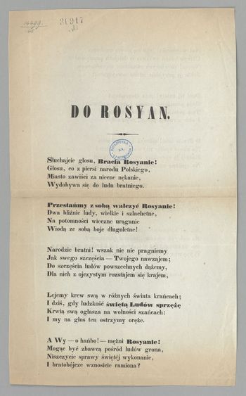 Do Rosyan. - [Lwów : wydawca nieznany, 1848]. - [1] karta ; 38x23 cm.