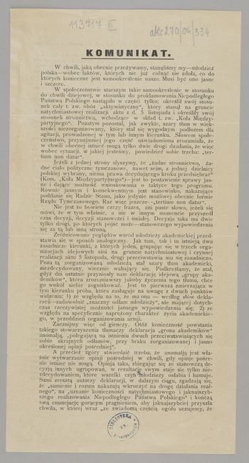 Komunikat. - [Warszawa] : [wydawca nieznany], 1917. - [1] karta ; 25x17 cm.