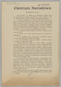 Komunikat zawiera deklarację ideową Centrum Narodowego.