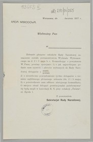 Incipit.: Wielmożny Pan ... w ... Zebranie plenarne członków Rady Narodowej naznaczone zostało [...]