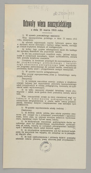 Wezwanie do podjęcia prac dla przygotowania i zorganizowania polskiego szkolnictwa publicznego.