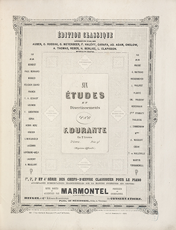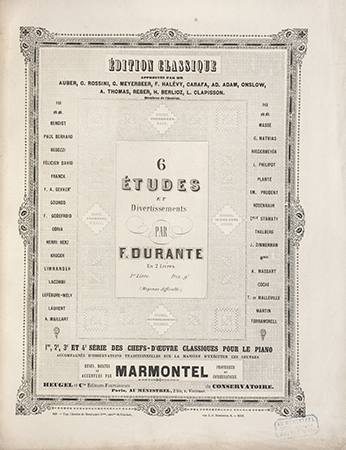 6 Etudes et divertissements en 2 livres (moyenne difficulté). 2.er Livre Nr 4-6 / par F. Durante. - Paris : Heugel et C.ie, [1867]. - [7], (paginacja ciągła strony 20-37, [1] strona ; 36 cm