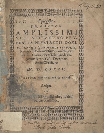 Dedykacja: "Einer Erbarn löblichen Gemeine, der Königlichen Stadt Thorun in Preussen [...] die S. Petri & Pauli Apostolorum, Anno Christi 1584 [...], St[roband].".