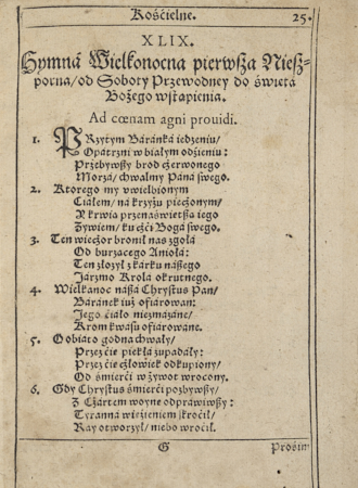 [Hymny kościelne...] / Grochowski Stanisław tł. - [Kraków : Siebeneicher Jakub, 1598]. - [4]karty, sygnowanieG₄ ; 4°.