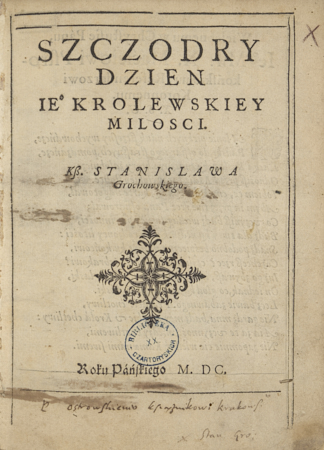 Dedykacja: Aleksandrowi X. Ostrogskiemu wojew. wołyńsk.