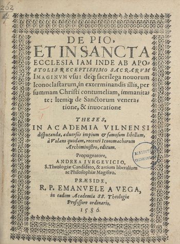 Absurda Synodu Toruńskiego: ktory mieli Ewangelicy w Toruniu Roku Pańskiego 1595. Mense Augusto, y teraz do druku podali. - [Wilno : Drukarnia Akademii Societatis Iesu], 1596. - [1-2],3-36,38,38-39,41,,41,43-44,[45] stron ,sygnowanie A-D⁴,E⁶ : ilustracje ; 4°.