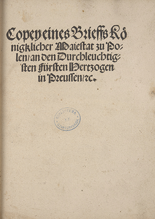 Dokument drukowany z pieczęcią mniejszą koronną Zygmunta Starego, okrągłą, przez papier na podkładzie woskowym. Około 46 mm. (zob. M. Gumowski, Pieczęcie królów, s. 25 nr 46 tabl. XIII).