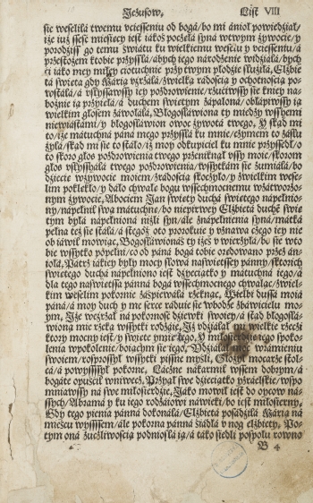 [Żywot Pana Jezu Krista ...] / Baltazar Opeć tł. - [Kraków] : [Wietor Hieronim], [1522 V 5 po]. - [119] kart (List VIII-XLVIII,L-LIIII,[LV],LV-LXXIX,[LXXX],LXXXII-LXXXXVIII,XCIX-CXIII,[CXIIII],C IIII-CXXVI), sygnowanieB₄-6,C-H⁶,I₂,I₄-6,K-N⁶,O₅,P-X⁶,Y₄ : ilustracje ; 2°.