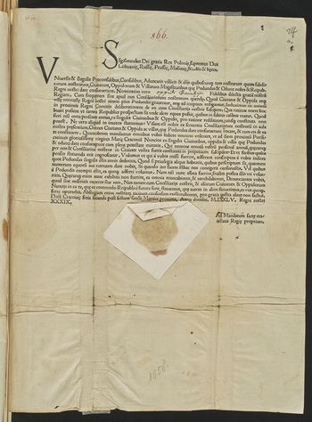 Litterae de tolleda mala moneta et de nova bona esxcudenda in Prussia datae Cracoviae in conventu generali 7 Martii a. 1530