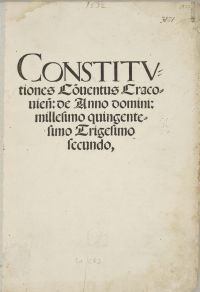 Constitvtiones Couentus Cracouien: de Anno domini: millesimo quingentesimo Trigesimo secundo. - [Ed. G]. - [Kraków : Wietor Hieronim, po 1541-przed 1550]. - [8] kart, sygnowanie A-B⁴ ; 2°.