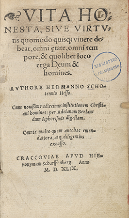Baarland Adriaan van (1486-1538). Institutio Christiani hominis (łac.)